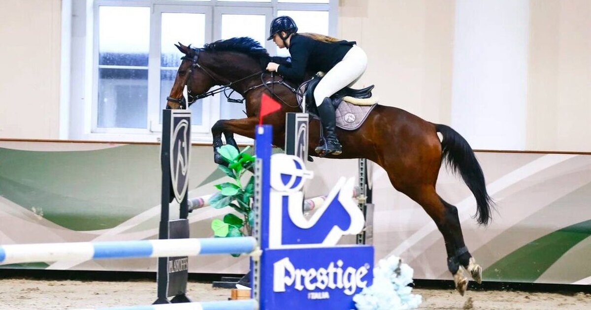 Стартовый опыт в конкуре с высотой препятствий до 105 см. Дома прыгает маршруты до 110 см., одиночные - до 130 см. Очень спокойная, подходит под всадника любого уровня подготовки.