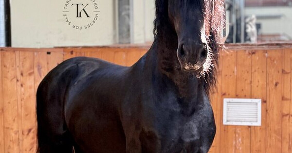 Жеребец. Фризской породы. Вороной масти. 165 см в холке. 2022 года рождения. Отец - Omer 493 (sport) , мать - Imke fan'e Horne Zathe. Импортирован из Нидерландов.