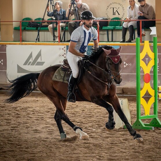 Безопасный для человека и адекватный под седлом, работает с кобылами в одном манеже, с огромной спортивной душой. Очень гибкий и верткий, абсолютно не смотрит на барьеры. Стартовый опыт до 110 см, дома прыгает до 125 см, перспективен выше. Подойдет под амбициозного всадника, под ребенка с грамотным тренером. Сам считает и видит расчет, поэтому подходит как учитель в конкур. Имеется вет.чек 2023 года.