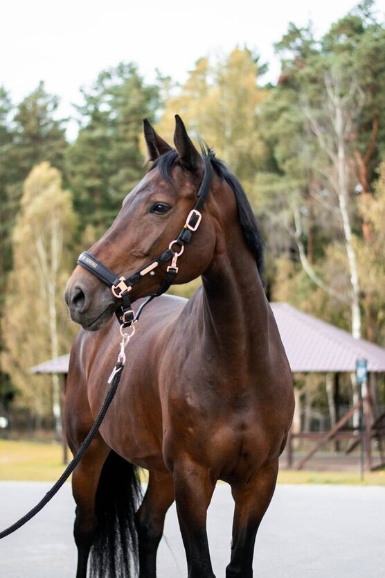 Человекоориентированная. В родословной имеются: Корнет Оболенский и Леди Киллер. В данный момент прыгает маршруты дома 100/110/115 см, имеется стартовый опыт. В работе у МС. Подойдет в разведение. Паспорт ФКСР.