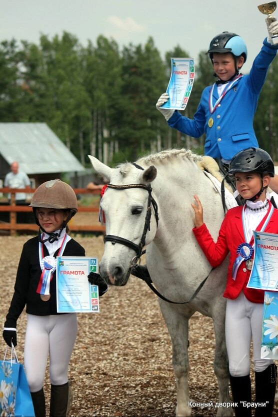 На Первенстве и Чемпионате Вологодской области по выездке в июне под ребёнком 11 лет Кубок по поням ППД А 1 м- 68%. Под ребёнком 13 лет в категории дети КПД 1м, ЛПД - 2 место ( 69%).