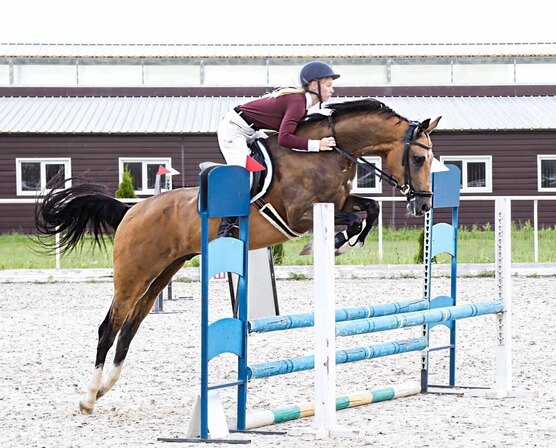 Очень любит прыгать, не боится. Добрый, душевный конь, ласковый в руках. Спокойный, все манипуляции без проблем. Отличный конь для любителя или ребенка.