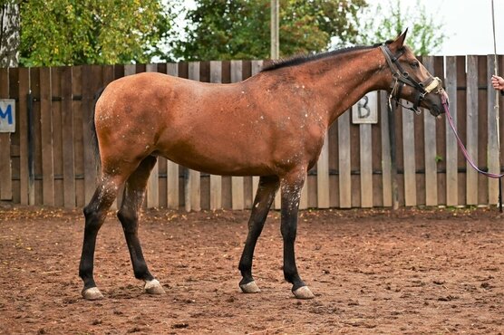 Хорошо развита, хорошая крепкая линия верха. Будет хороша в рабочей выездке и конкуре.