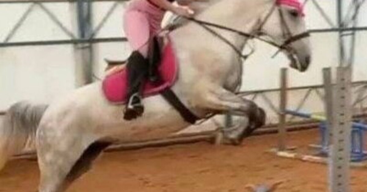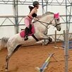 Старты - маршруты до 60 см (один раз). Дома - связки до 80 см, гимнастика до 110 см под уверенным всадником, так как толкается издалека. В полях ведет себя идеально, как одна, так и в компании, не таскает, может бегать даже на недоуздке. Выносливая и крепкая кобыла.