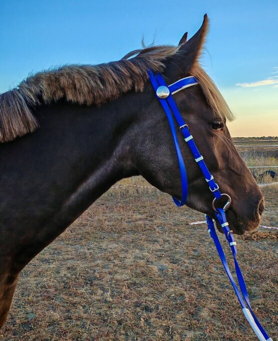 Легкообучаема, обладает легкими, просторными движениями. Добрая и ласковая кобыла, приучена ко всем манипуляциям.