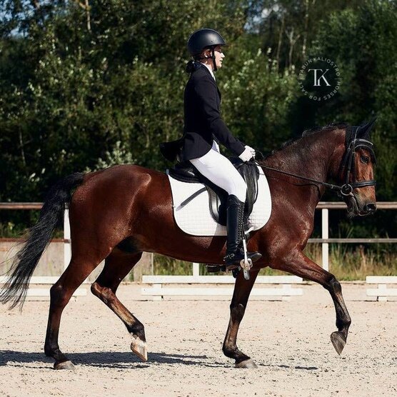 Спокойный. Уровень подготовки: юношеские езды от 65% и все детские езды включительно. Все старты в призах. Имеет красивую рысь, галоп в горку и хороший заступ на шагу. Прыгает до 60 см. Подойдет под опытных и маленьких детей. Имеется паспорт спортивной лошади ФКСР.