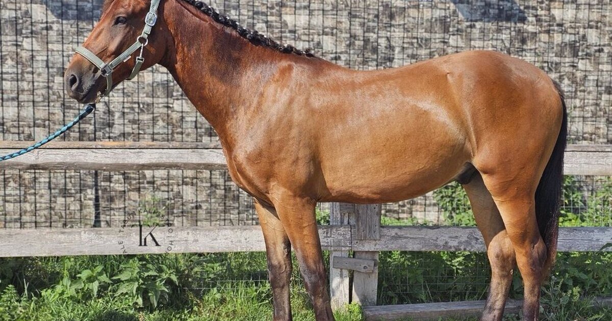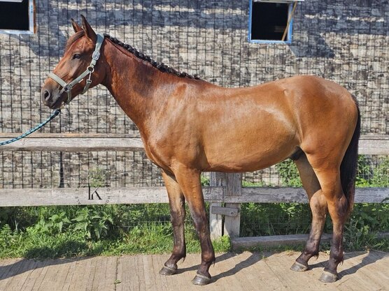Мерин. Гнедой масти. 160 см в холке, растет. 2023 года рождения. Отец - Медалист, Мать - Пустельга.