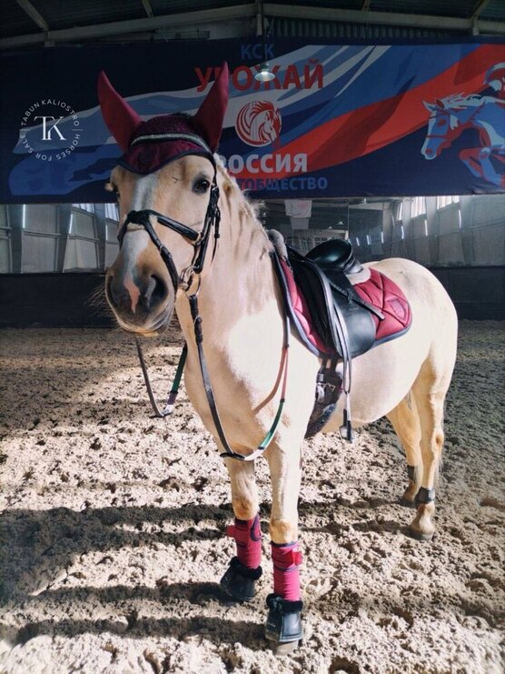 Добрый, покладистый, дружелюбный, спокойный. Уровень подготовки: предварительный приз. Прыгает связки до 85 см. Не имеет денниковых пороков.