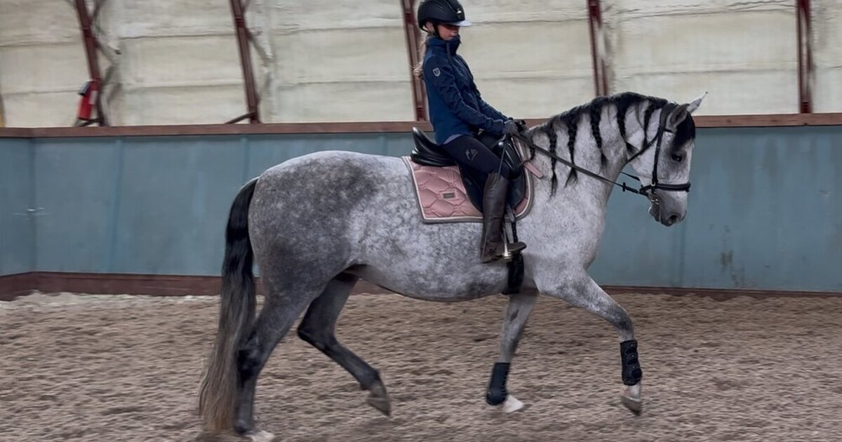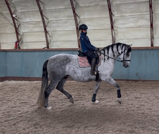 Кобыла 2019 года, 162 см в холке, правильно сложена, широкая, костистая. Нарядная серая масть, привлекает взгляд окружающих. Полностью испанское происхождение!