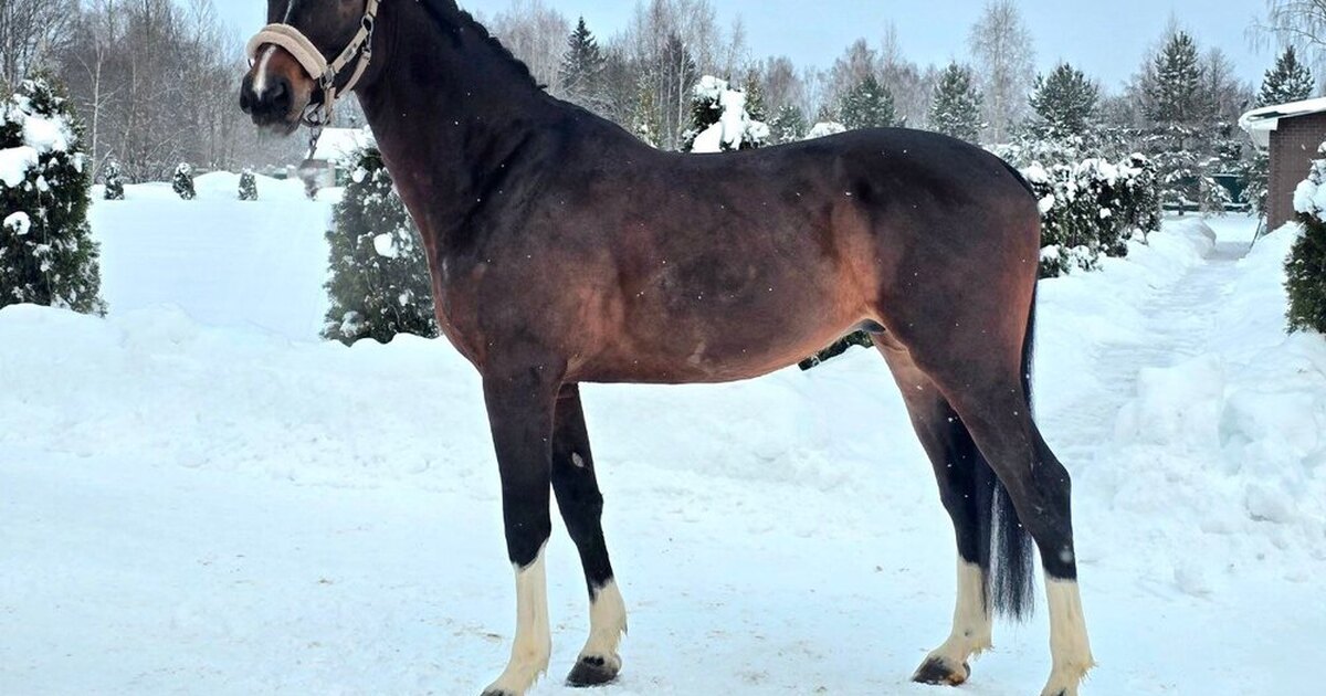 Работает в выездковом направлении. Три аллюра, сырая менка, боковые, напрыган на свободе до 140см.