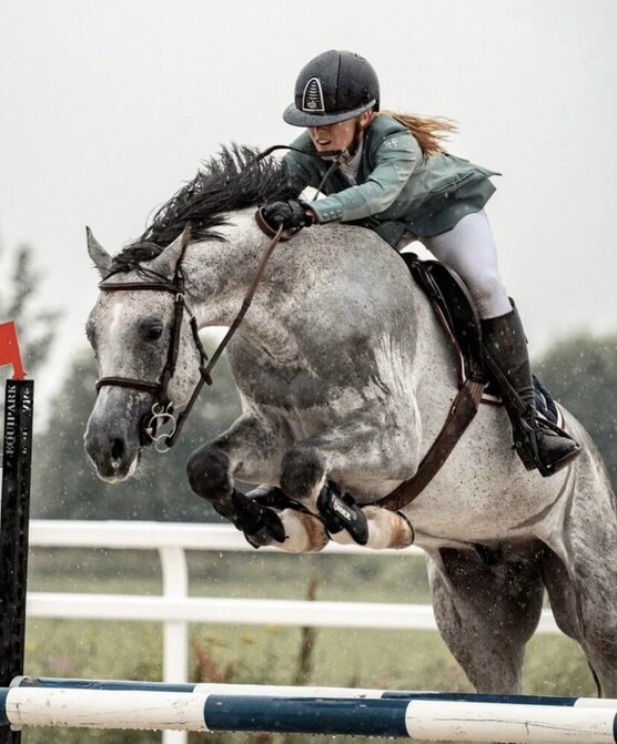 Старты - маршруты до 100 см (под любителем), часто в призах, может выше. Дома - гимнастика до 140 см с запасом; знает менку. Обладает техничным прыжком. Ничего не боится, прыгает барьеры любой конфигурации, в меру активный. Любопытный, ориентирован на человека, не жеребцует.