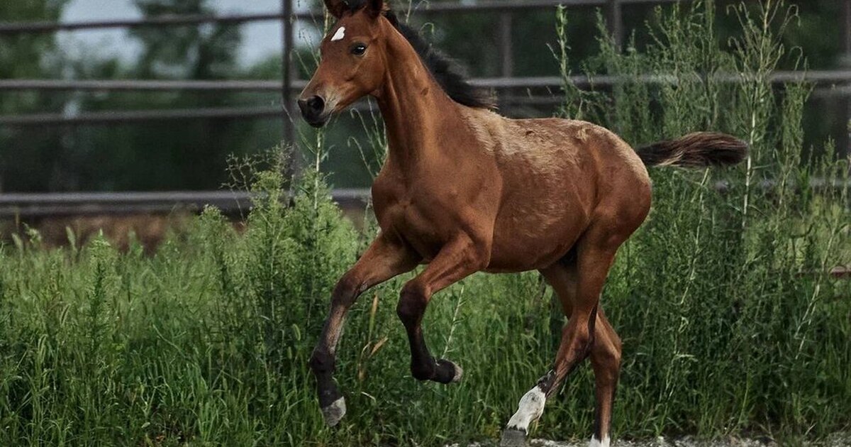 Высокий, длинноногий жеребчик со спокойным и размеренным характером. Очень общительный и ласковый конь, обещает быть украшением любой конюшни!