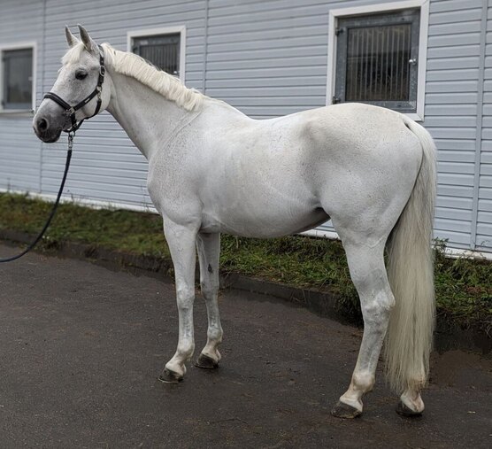 Стартовый опыт в конкуре с высотой препятствий до 100 см., дома прыгает до 110 см. Подойдет под уверенного всадника, не самовоз.