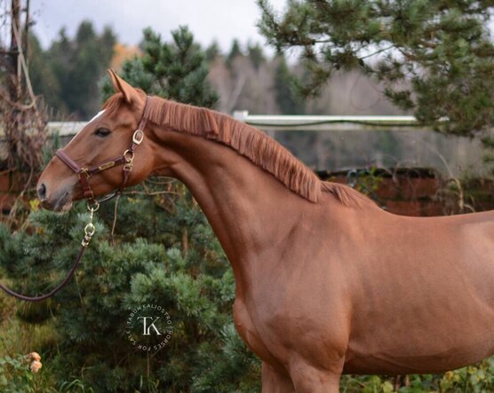 Кобыла. Голландской теплокровной породы. 173 см в холке. 2021 года рождения. По отцу от Edelson x Zhivago x Gribaldi, По матери от World Diamond O x Rotspon x Lauries Crusador.
