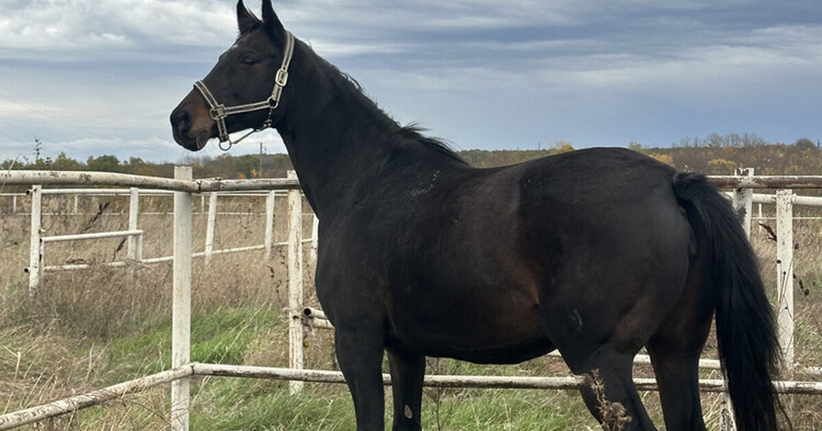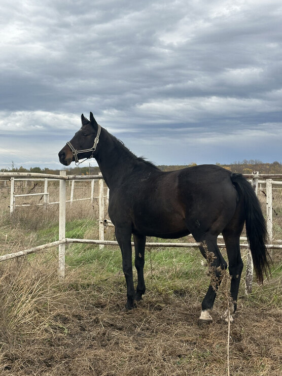 Кобыла полукровная (тракено-голштинская) 2007 г.р, 163 в/х, рождена в Кировском к/з, красивая костистая но при этом на легких движениях, прекрасно выглядит абсолютно не на свой возраст. В спорте не была, не седлалась много лет. Приносила заводу прекрасных жеребят, крылась не каждый год (не на износ). В данный момент жеребая от вестфальского жеребца, выжеребка в конце августа. Добрая, спокойная кобыла. Без проблем в быту и нюансов по здоровью. Зажеребилась путем ИО с первого раза