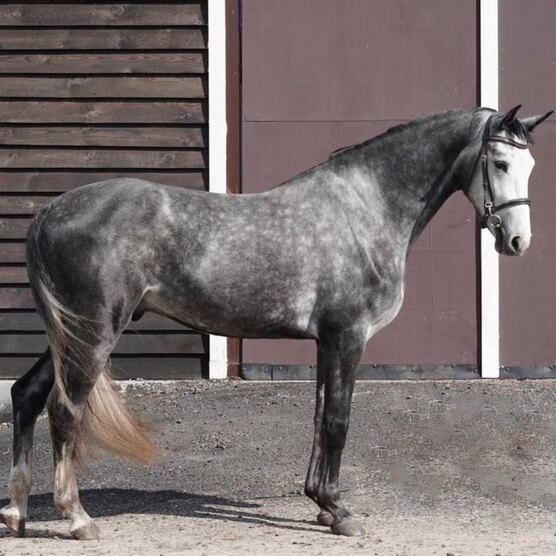 Жеребец. Серой масти. 164 см в холке. 2022 года рождения. Отец - Bon Jovi, Мать - Madic Rubinrot van Ordhof.