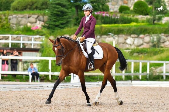 Идеальная лошадь под ребёнка или любителя. Огромный стартовый опыт в конкуре с высотой препятствий до 110 см. под детьми. Один раз выступала в выездке. Сейчас работает под ребёнком одиннадцати лет. На 500% безопасная.
