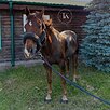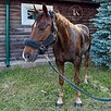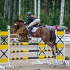 Добрый, ласковый, адекватно ведет себя в руках. Стартовый опыт до 120 см под ребенком, связки до 130 см, одиночные до 145 см. Скоростной, верткий, очень аккуратный и удобный. Знает базовую выездку.