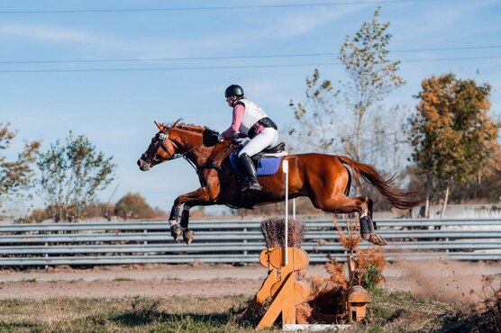 Стартовый опыт в конкуре с высотой препятствий до 110 см., Детских ездах и троеборье 1*. Дома прыгает одиночные до 130 см, в клавишах - до 140 см. Готова к Юношеским ездам, делает серийные менки.