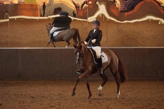 - Находится в выездковом тренинге под седлом МС, стартовый опыт в ездах ППЮ, первый старт по Малому призу 65%
