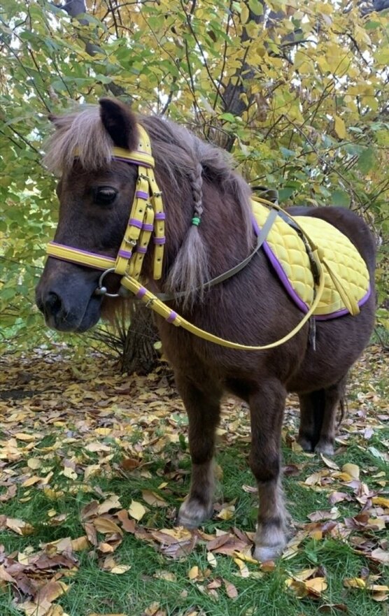 Управляется детьми без железа, работает от голоса. Жеребилась, хорошая мама. Приучена ко всем бытовым манипуляциям. Безопасная, спокойная, неконфликтная.