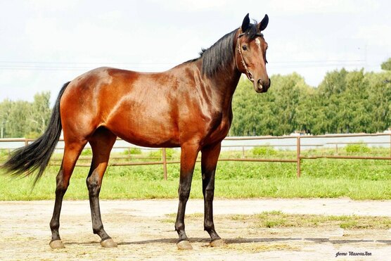 Кобыла жеребая на март 2026 года, от русского верхового жеребца.
