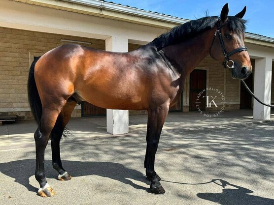 Жеребец. Полукровной породы. Гнедой масти. 165 см в холке. 2016 года рождения.