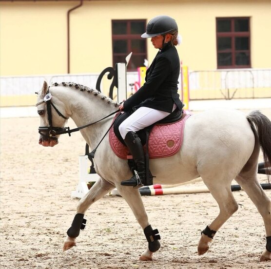 бегает выездку, прыгает конкур на соревнованиях до 80, есть опыт в дисциплине тентпеггинг, все старты в призах, очень красивый поник с розовым носиком, станет самым лучшим партнером для самых маленьких детишек, начинающих свой путь в спорте ????
