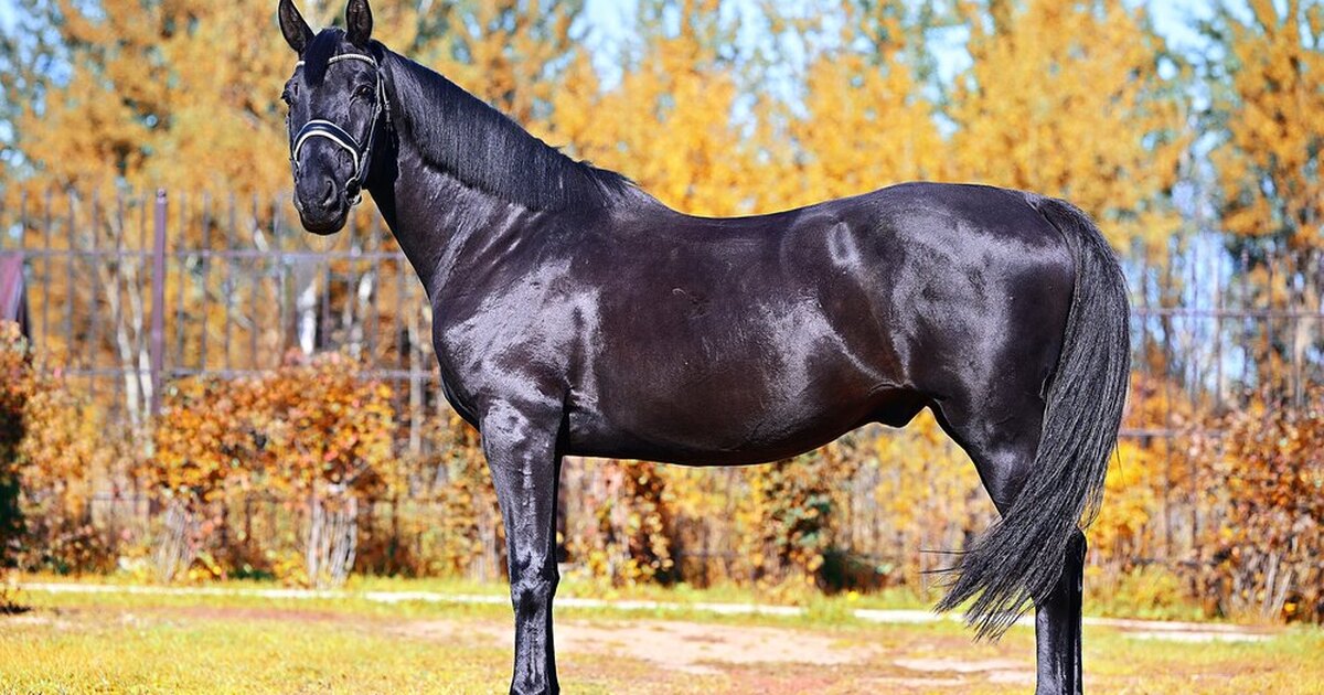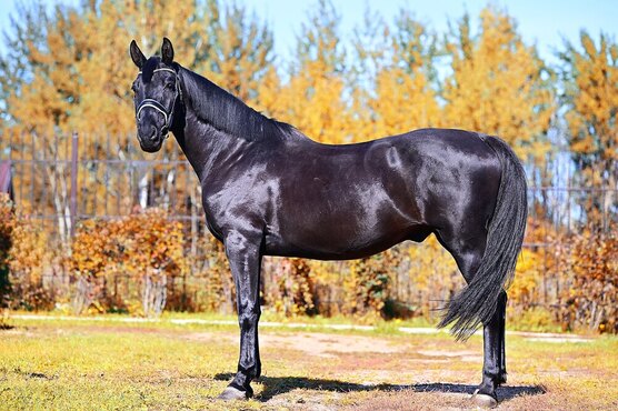 Вороной мерин русской верховой породы.