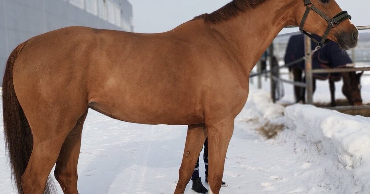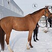 Кобыла. Голштинской породы. Рыжей масти. 167 см в холке. 2017 года рождения. Отец - Алькаро, мать - Привилегия.