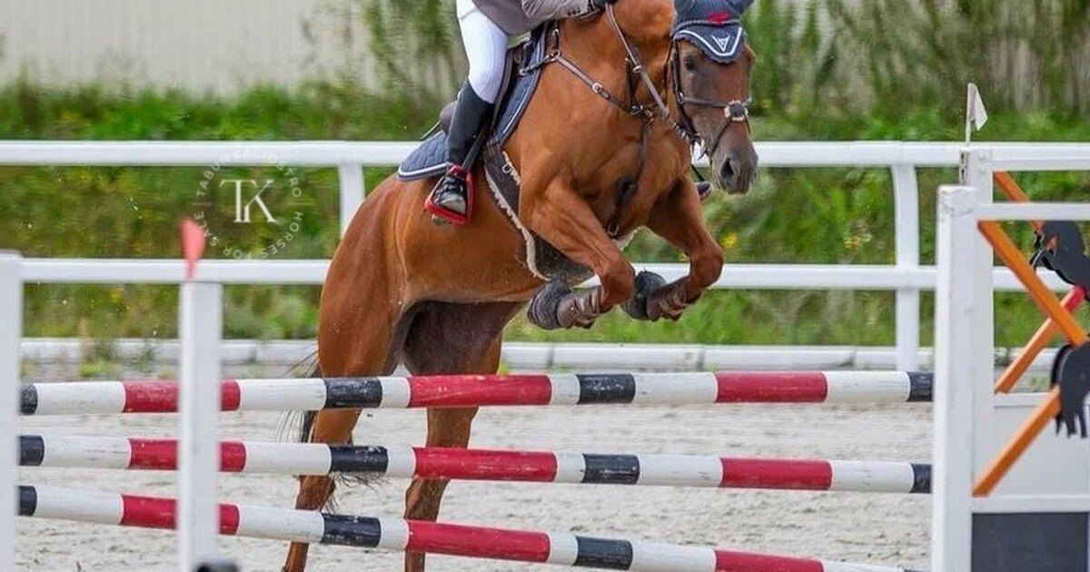 Стартовый опыт до 100 см, дома маршруты до 120 см, одиночные до 130 см. Хорошие движения. Под верхом в меру активная. Прыгает барьеры любой конфигурации. Регулярно выступает на соревнованиях. Ходит в поля, заходит в воду. Очень спокойная в руках.