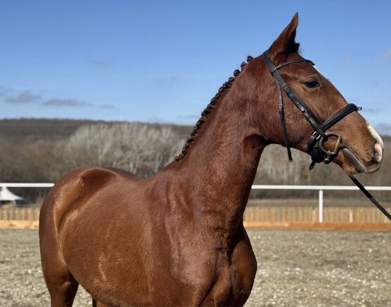 МОЛОДАЯ КОБЫЛКА • НА 1/2 НЕМЕЦКОЕ ПРОИСХОЖДЕНИЕ • ОПОВОЖЕНА • АКТИВНО РАСТЕТ