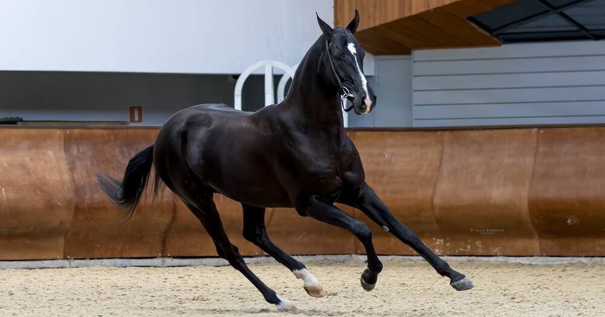 Жеребец ахалтекинской чистокровной породы