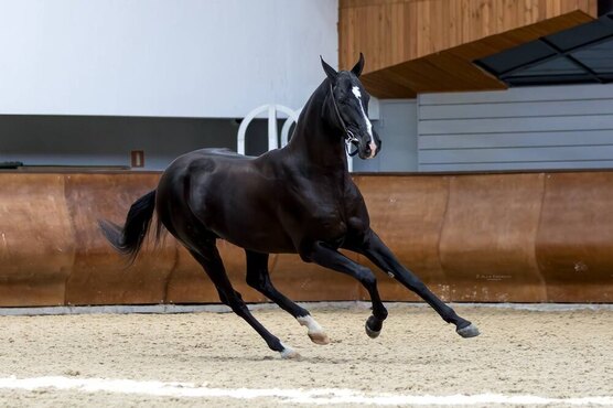 Дома - связки до 60 см; готовится к ездам для 5-летних лошадей. Обладатель лучших движений на выставке пород 2025г. Работает на любых площадках с кобылами, ходит в поля. Имеет правильный экстерьер, естественный высокий сбор, отлично двигается от зада. Высоко оценен специалистами на бонитировке. Мягкий, надежный.
