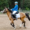 Отличные аллюры, очень прыгучий, на свободе напрыгивали до 100см , больше пока не ставили.