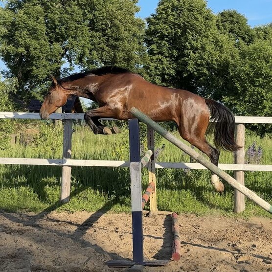 Очень сильная, крупная и высокая кобыла. На шикарных движениях с отличным прыжком. С рождения в одних руках. Грамотно выращивается. Гуляет в табуне на выпасе. Есть косметический дефект(не с ногами), не мешающий ей быть спортивной лошадью. Интересна в разведение. Документы ВНИИК.