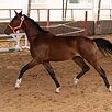 Очень интересный мерин, приятный характер, гибкий, пластичный, ладный по экстерьеру! На данный момент подготавливается к заездке, знает седло, уздечку, корду. Имеет плавные приятные движения и техничный прыжок.