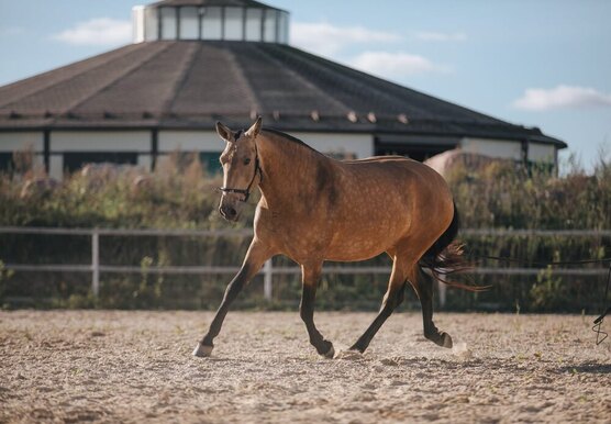Буланая андалузская кобыла 2020г.р, в/х165см, растёт. Крупная, широкая на хороших движениях. Красивая голова с лёгкой горбинкой. Качественное выращивание на хорошем сене и кормах, живёт в табуне с многочасовым выгулом. В регулярном тренинге по системе Equi Flow, готовится к заездке, обучается трюкам. Испанские документы.