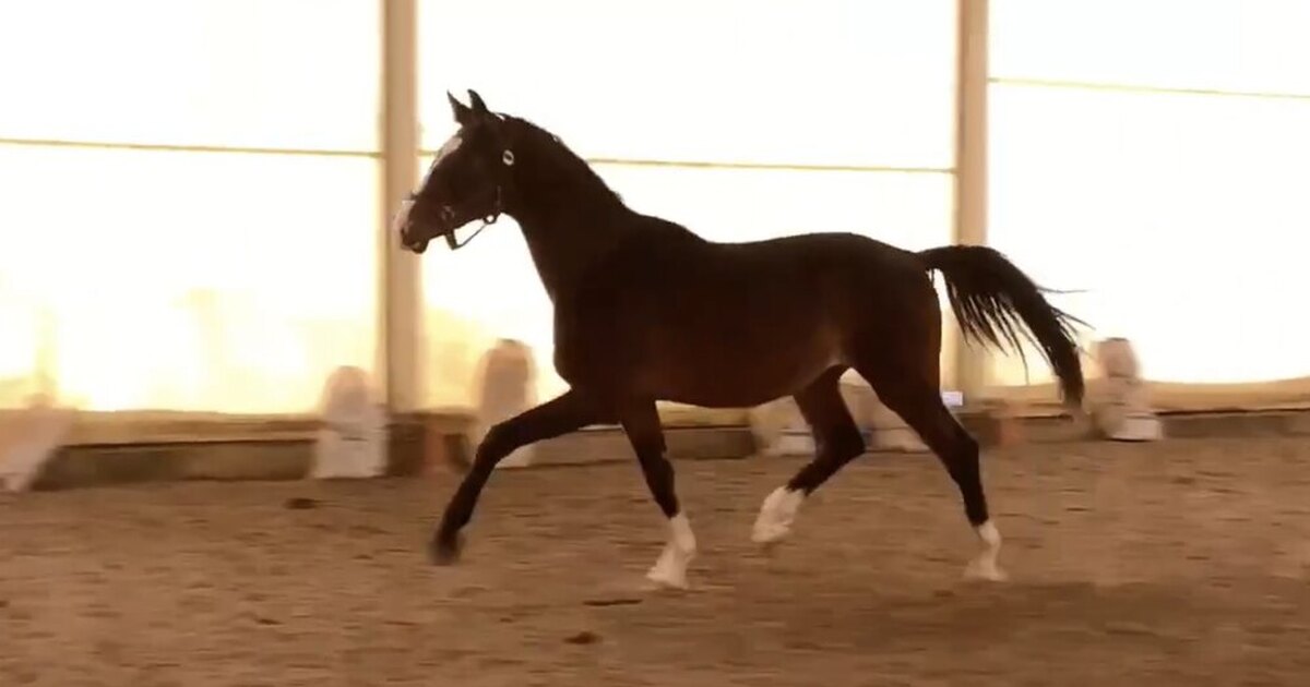 – Нарядный двухлетний жеребец полукровной спортивной породы