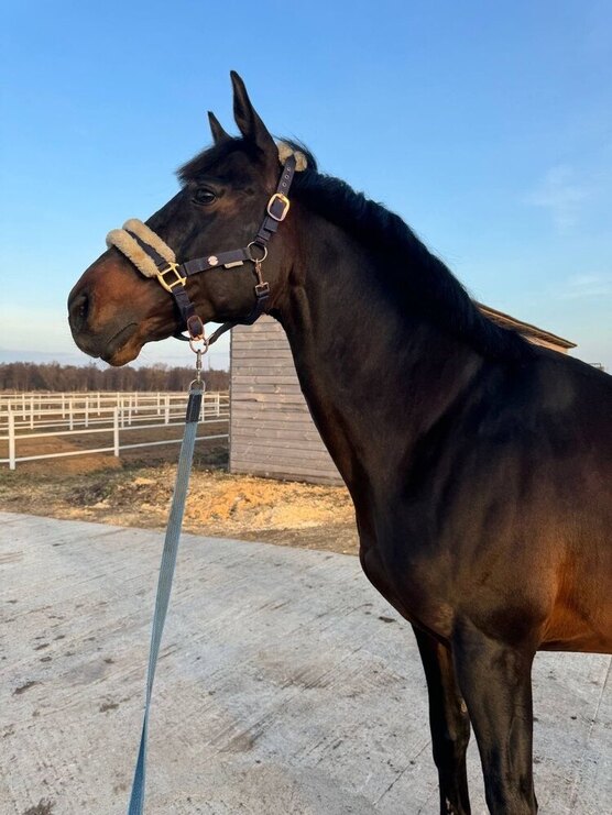 Стартовый опыт в конкуре с высотой препятствий до 100 см., дома прыгает связки до 110 см., знает элементы Юношеских езд. Ведёт себя, как настоящий жеребец, поэтому подходит только опытному коневладельцу.