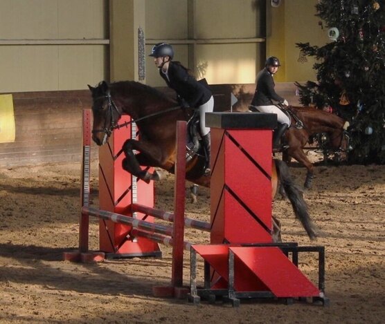 Прыгает кроссовые барьеры, ездил на сборы по троеборью в Maxima Stables.