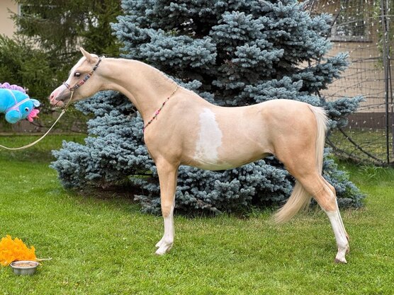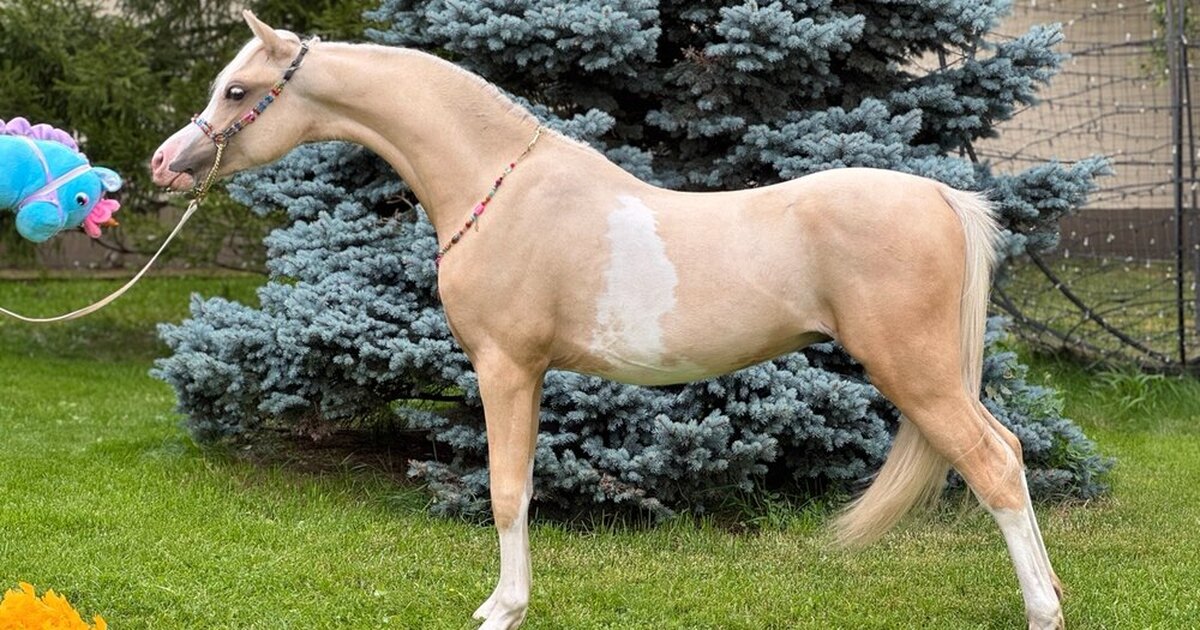 ЛАВ МИ СТАЙЛ (Лавчик) - уэльский пони секции Б, жеребчик 1,5 года - 2024 г.р, нарядной соловой-сабино масти, ожидаемый рост 134 см в/х. Очень нарядный эффектный экстерьеристый, с шикарным выходом шеи, аккуратной мордочкой, весь ладненький ну очень красотун. С высокими четырьмя носочками, проточиной и пежиной на пузике, голубым глазиком.