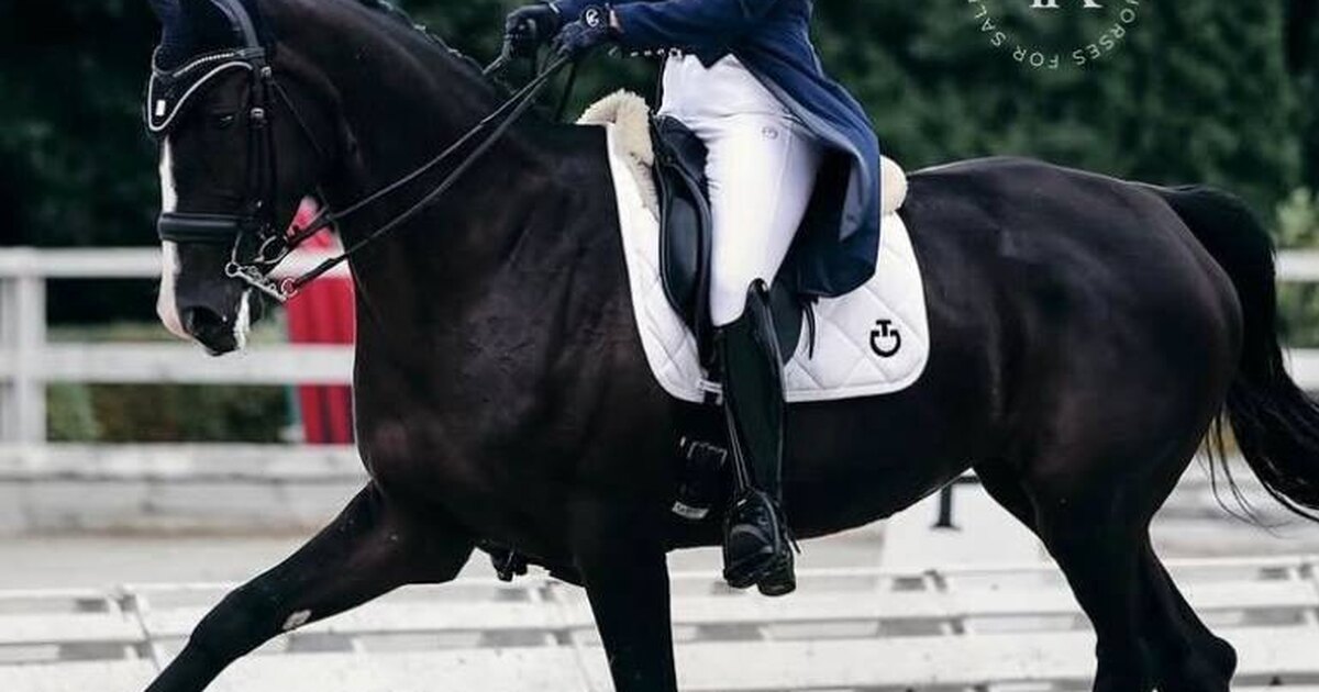 Кобыла. Голландской теплокровной породы. Вороной масти. Около 176 см в холке. 2016 года рождения.
