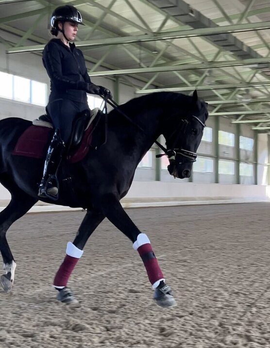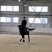 Кобыла полукровная (?отец-Английская Чистокровная, мать-Русская рысистая)вороная, 2016 гр, готова на юношеские езды, из малого круга легко делает контрпринимания на галопе, чистые менки в 4-3-2 темпа, шикарная рысь, чистые галоп и шаг.