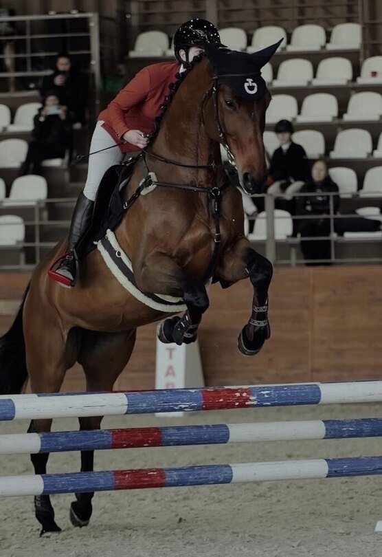 Старты - маршруты до 110 см. Дома - боковые, менки в 4 темпа. Честная, абсолютно не смотрит на барьеры, прыгает уверенно. Очень удобная и комфортная под седлом. Спокойная, добрая.