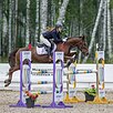 Старты - маршруты до 120 см (под ребенком), всегда в призах. Дома - связки до 130 см; знает уступки, менки в 2-3 темпа. Честный, скоростной, очень аккуратный. Не смотрящий, прыгает барьеры любой конфигурации. Управляется голосом, безопасный. Находится в тренинге у МС. Любого поднимет с нуля до высот.