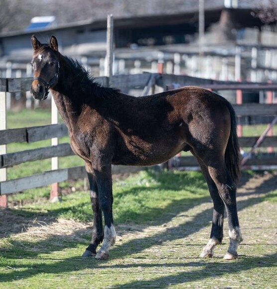 Оповожен. Адекватный, спокойный. Обладает качественными природными аллюрами. Гуляет весь световой день в табуне.