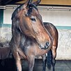 Ласковая, очень добрая и нежная кобыла, приучена ко всем бытовым манипуляциям.