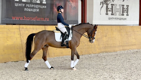Гнедая ганноверская кобыла A'Quarella Heart (коротко - Акварель) (Куизарро / World Diamond), 2020 г.р., рост: 165 см, паспорт ганноверского Союза Германии.