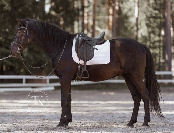Знает боковые элементы: уступки, плечи, принимания, пируэты на шагу. Имеет удобные аллюры. Все манипуляции без проблем. Подойдет под опытного всадника.